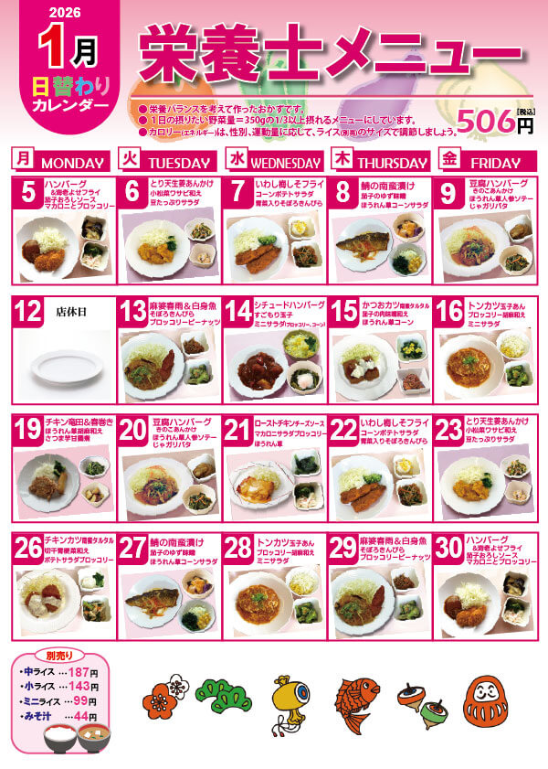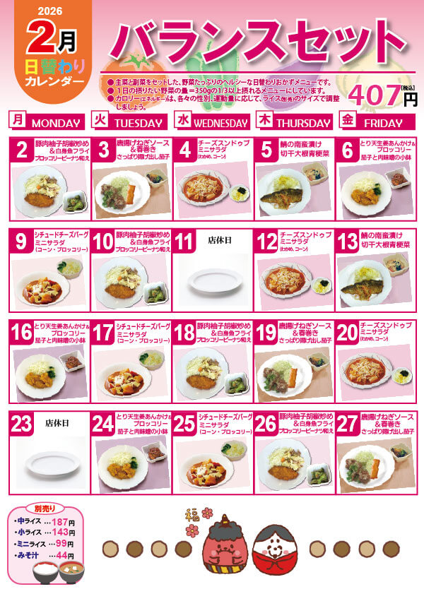 栄養士メニュー・バランスセット 提供カレンダー