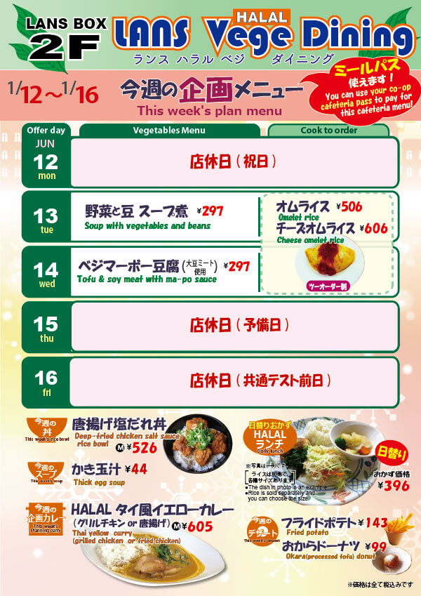 1/12〜1/16 今週の企画メニュー