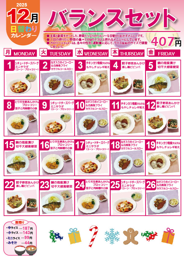 12月のバランスセットカレンダー