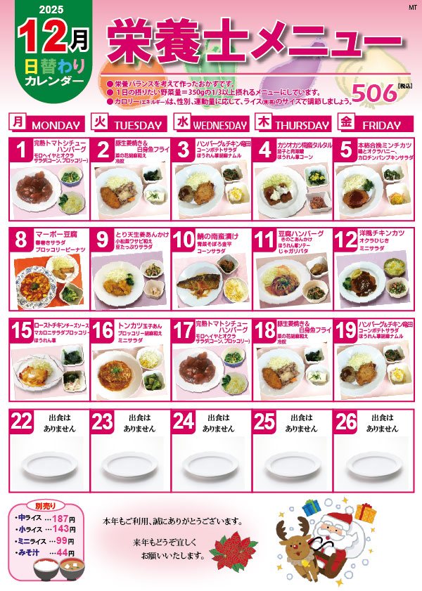 12月の栄養士メニューカレンダー