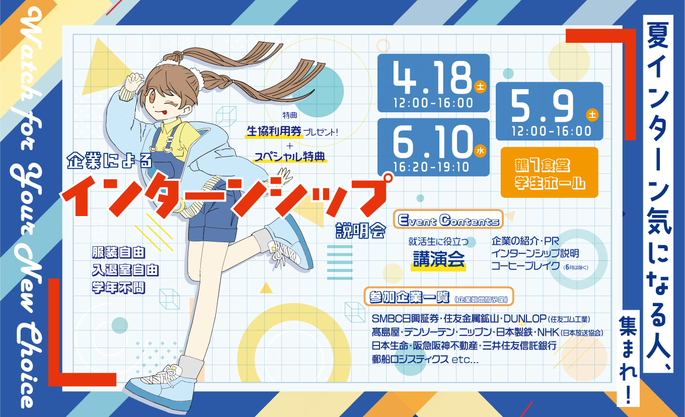 私たちの活動の軸は、神戸大学生が納得して卒業後の道に進めるようお助けしたいというものです。その具体化として、就活情報や仕事に関する知識などの提供やイベントを実施しています。 ぜひ神戸大学生協キャリアサポートをご活用ください!